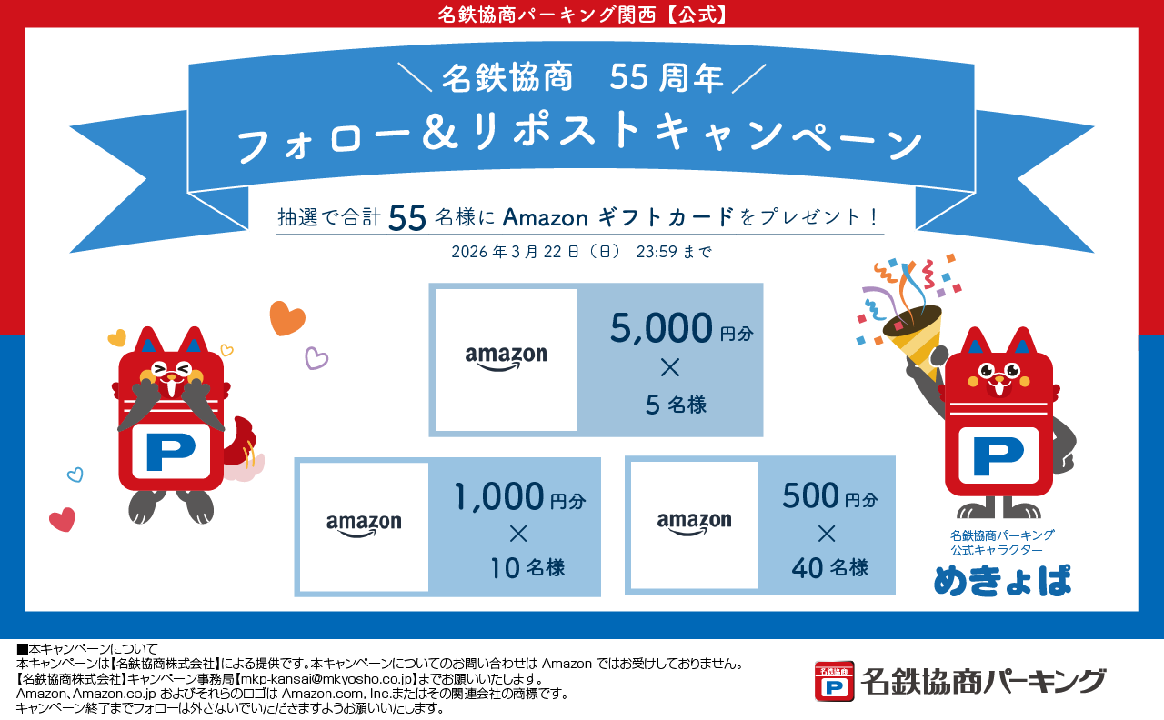 【名鉄協商株式会社】キャンペーン事務局【mkp-kansai@mkyosho.co.jp】までお願いいたします。